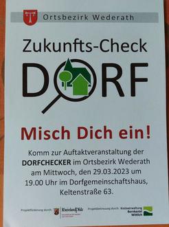 zur Auftaktveranstaltung "Zukunfts-Check Dorf“ die am Mittwoch, den 29.03.2023 um 19:00 Uhr im Dorfgemeinschaftshaus stattfindet sind alle Bewohner recht herzlich eingeladen.