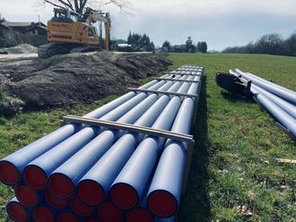 Seit nunmehr drei Wochen laufen die Verlegungsarbeiten der neuen Löschwasserleitung im Bereich des Freizeit- und Wochenendhausgebietes in Hoxel. Aufgrund des nassen Wetters haben sich die Arbeiten verzögert, kommen nunmehr aber sehr gut voran. Die Verlegung einer neuen Löschwasserleitung mit Oberflurhydrandten wurde aufgrund erforderlicher Brandschutzmaßnahmen in diesem Gebiet erforderlich.