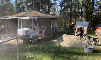 Die angekündigten Pflasterarbeiten eines Gehweges sind bereits in vollem Gange und nehmen schon Formen an.