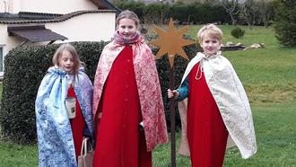 Am Sonntag, dem 07.01.23 zogen die Sternsinger durch unser Dorf und baten um Spenden für hilfsbedürftige Kinder. Als hl.drei Könige ver- kleidet gingen zwei Gruppen von Kommunionkinder und Messdienern von Haus zu Haus und baten nach einem kleinen Segensspruch um eine Spende für notleidende und arme Kinder.
