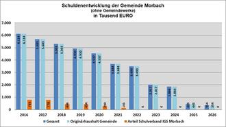 Die langfristigen Verbindlichkeiten aus Investitionskrediten der Gemeinde Morbach belaufen sich