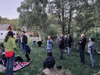 Im Zuge der „Woche der Artenvielfalt“ haben Kristine Mayer und Michael Klosowski eine Fledermaus-Exkursion in Hoxel angeboten. Rund 30 Interessierte, darunter auch einige Kinder und Jugendliche, trafen sich am Freitagabend am Hoxeler Weiher. Kristine und Michael erzählten von den Lebensgewohnheiten der Fledermäuse und beantworteten Fragen zu den "Akrobaten der Nacht“. Die faszinierenden Säugetiere sind nämlich für ihre beeindruckenden Flugkünste bekannt. Alte Gemäuer und Scheunen sowie viele Grünflächen, Bäume und Wälder bilden einen perfekten Lebensraum für Fledermäuse. „Hoxel ist ein Paradies für Fledermäuse“, sagt Kristine. Auf dem Balkan sind neben Zwerg- und Langohrfledermäusen auch das Große Mausohr, die Bartfledermaus und Fransenfledermäuse zuhause. An diesem Abend erfahren die Anwesenden, dass Fledermäuse Gewohnheitstiere sind. Die beiden Fledermaus-Experten haben im Vorfeld die Tiere am Hoxeler Weiher beobachtet. Und so stellte Michael zu Beginn in Aussicht, dass die ersten Fledermäuse aus dem Dorf gegen 21 Uhr auf der Flugstraße entlang des Rielsbach Richtung Weiher kommen würden, eine kleine Runde drehen und dann Richtung Wald fliegen. So war es dann auch. Der Ultraschalldetektor, eingestellt auf eine Frequenz von 45.000 Hertz, machte sich um kurz vor 21 Uhr bemerkbar und wir bekamen an diesem Abend die ersten Fledermäuse zu sehen. „Wenn es gleich noch ein bisschen dunkler ist, kommt eine größere Kolonie und wird rund um den Weiher jagen“, baute Michael die Spannung unter den Teilnehmern auf. 10 Minuten später piepsten die drei eingesetzten Detektoren unaufhörlich. Eine Vielzahl von Fledermäusen kam aus Richtung Dorf und jagte rund um den Weiher. Dabei ließen sich die Tiere von uns nicht beeindrucken und stören. Wir standen am Weiher und um uns herum waren dutzende Fledermäuse, die auf Insektenjagd waren. Herzlichen Dank an Kristine und Michael für den interessanten, informativen und schönen Abend.