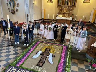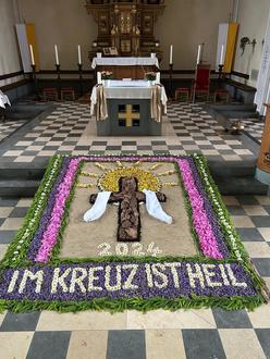 Vielen Dank an alle, die zum Gelingen des Fronleichnamsfestes beigetragen haben. Ein besonderer Dank dem Musikverein Weiperath und den fleißigen Händen, die den Blumenteppich vor den Altarstufen gestaltet haben.