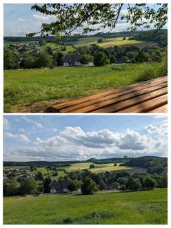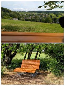 Auf dem Kleinicherberg steht jetzt eine Sinnesbank, von der man einen schönen Ausblick auf unser Dorf Wederath hat. Hier kann man besonders den Sonnenuntergang genießen.