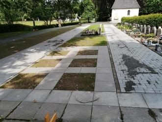 Auf unserem Friedhof wurden neue Urnengrabstätten angelegt und die Wege zu den Grabstätten gepflastert.