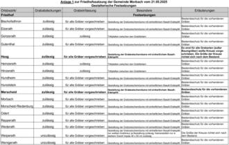 Der Gemeinderat Morbach hat am 21.05.2025 aufgrund des § 24 der Gemeindeordnung für Rheinland-Pfalz (GemO) sowie der §§ 2, Abs. 3, 5 Abs. 2 und 6 Abs. 1 Satz 1 des Bestattungsgesetzes Rheinland-Pfalz (BestG) folgende Satzung beschlossen, die hiermit bekanntgemacht wird: