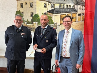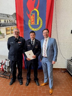 Niklas Sonntag und Jonas Hartmann. Jeroen Busch durften sich über die Ernennung zum Feuerwehrmann freuen.