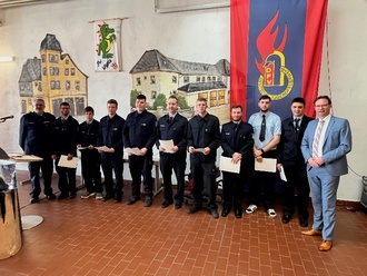 Den Dienstgrad Hauptfeuerwehrmann bzw. Hauptfeuerwehrfrau dürfen ab sofort Gregor Ertz, Marie Thomas, Lars Adams, Sina-Mira Bernard, Benjamin Brück, Florian Rummel, Leon Eck, Malte Christ, Adrian Polok und David Peters tragen.