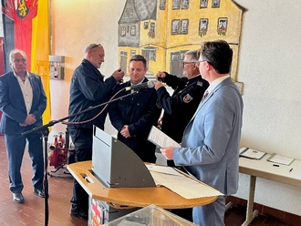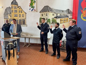 Aufgrund der erstmaligen Bestellung zu Ehrenbeamte legten Florian Petry, Alexander Nauerth und Tobias Pöck den Eid als Ehrenbeamter ab.