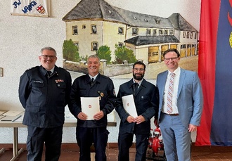 Florian Petry (Morbach) und Heinz-Peter Deutschewitz (Hinzerath) verstärken mit ihrer neuen Befähigung als Oberbrandmeister ihre Feuerwehren.