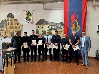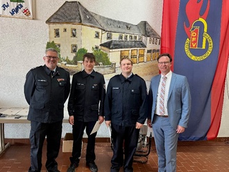 Zum Feuerwehranwärter wurden folgende Kameraden ernannt: Simon Münster, Niklas Wetzel, Daniel Gorges, Dennis Anton, Elisa Weyand, Markus Wilwers, Leon Schabbach, Mia Schubert, Robin Eck, Nele Decker, Max Nau, Elia Pfeiffer und Yannis Wagner. Diese jungen Kameraden stehen für einen Fortbestand der Feuerwehr.