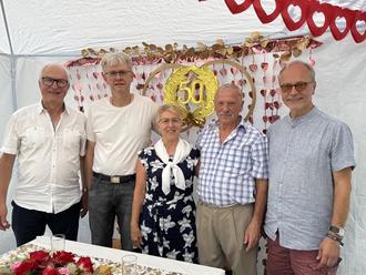 Am 27.06.2025 feierte das Ehepaar Maria und Waldemar Kurz das Fest der Goldenen Hochzeit. Zu diesem besonderen 50. Hochzeitstag überbrachten der 2. Beigeordnete der Gemeinde Karl Heinz Erz und der Ortsvorsteher Hugo Bader einen Blumenstrauß, Geschenke, Urkunden und die Gratulationen des Landrates Andreas Hackethal und des Bürgermeisters Arianit Besiri. Bei hochsommerlichen Temperaturen erlebten wir ein ganz besonderes Familienfest mit den Kindern, Schwiegerkindern und Enkelkindern und als Überraschungsgast kam noch Pfarrer Florian Brödner.