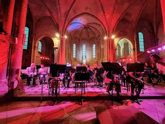 In der Kirche: Die Morbacher Musiker bei ihrem Vortrag in der illuminierten Kirche von Pont-sur-Yonne.