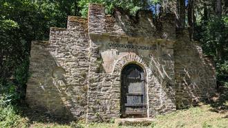 Ein antikes Bauwerk, das die Blicke von Wanderern und Radfahrern auf sich zieht.
