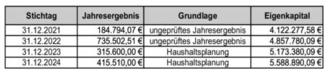 Das Eigenkapital zum Eröffnungsbilanzstichtag 01.01.2009 betrug geprüft und beschlossen 1.302.929,35 €. Die Entwicklung des Eigenkapitals des Zweckverbandes stellt sich wie folgt dar: