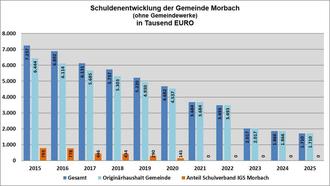 Die langfristigen Verbindlichkeiten aus Investitionskrediten der Gemeinde Morbach belaufen sich