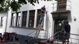 Gut Ding braucht Weil und viel Geduld. So möchte ich die schon sehr lange in Auftrag gegebene Reparatur des Überstandes am Behinderteneingang beschreiben. Corona-Pandemie und ein hoher Auftragsbestand trugen dazu bei, dass der Beton-Überstand erst im Juni dieses Jahres ausgebessert werden konnte. Um eine ordentliche Reparatur der Podestplatte vornehmen zu können, musste die Schadstelle neu eingeschalt und eine Armierung eingebaut werden. Der Überstand befindet sich jetzt wieder in einem ordnungsgemäßen Zustand.
