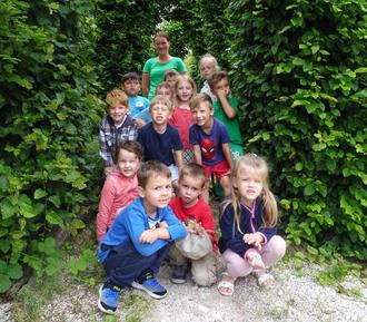 Bei schönem, trockenem Wetter begrüßte uns die Gärtnerin Steffi beim Spielplatz der Gärtnerei. Von dort aus startete unsere Erkundungs-Tour.