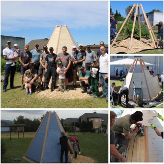Elternausschuss, engagierte Opas und Paten planten und fertigten in Zusammenarbeit mit Herrn Gehard Resch ein großes Tipi.