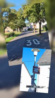 Eine weitere, defekt geglaubte Altanlage konnte nun nach eigener Reparatur durch Marcel an der Laterne Kreuzung Oberdorf / Vor Dreifallen montiert werden, da sich auch hier die Autofahrer vom Gewerbegebiet her kommend, nicht immer an die 30 Km/h halten.