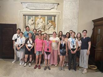 Anlässlich der Ministranten-Wallfahrt des Bistums Trier nach Rom besuchten einige Schülerinnen und Schüler des Nikolaus-von-Kues-Gymnasiums in Bernkastel-Kues, die als Messdienerinnen und Messdiener in ihren Pfarrgemeinden tätig sind, auch das Grab des Schulpatrons Nikolaus von Kues, das sich in seiner Titelkirche San Pietro in Vincoli befindet, während sein Herz ja in der Kapelle des Cusanus-Stifts in seiner moselländischen Heimat ruht.