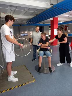 Dieses Mal ging es in der letzten Woche vor den Sommerferien mit Frau Böhmer, Herrn Feil und Frau Ruhk nach Frankfurt zur ExperiMINTa. Über 50 MINT-Begeisterte von der 7. bis zur 11. Klasse experimentierten an verschiedenen Stationen, ließen zum Beispiel Riesenseifenblasen entstehen, jagten Blitze durch den Raum, probierten Fakir-Bretter aus oder lösten diverse KI-Aufgaben. Das ExperiMINTa stellte sich als wirklich abwechslungsreiche Location heraus. Und auch dieses Mal wurde diese Fahrt für alle Teilnehmenden diese Fahrt für alle Teilnehmenden aus dem MINT-Topf finanziert, der von Papier-Mettler KG gesponsert wurde. Mal schauen, wohin die nächste MINT-Fahrt führen wird.