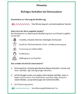Am Donnerstag 11. September 2025 findet der diesjährige bundesweite Warntag statt. Der Bund wird hierbei zwischen 11.00 und 11.45 Uhr von zentraler Stelle verschiedene Warnmittel über das Modulare Warnsystem des Bundes (MoWaS) auslösen. Hierbei werden u.a. Radio und Fernsehen, Internetseiten und soziale Medien, WarnApps (NINA, KatWarn etc.) und der Warnkanal „Cell Broadcast“ angesprochen. Informieren Sie sich daher im Vorfeld über die Internetseite www.bbk.bund.de/bundesweiter-warntag und aktualisieren Sie insb. Ihre WarnApps.