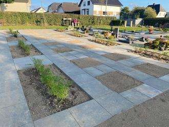 In den letzten Wochen wurde auf unserem Friedhof das Urnengräberfeld erweitert. Um ein einheitliches Bild zu erhalten, übernahmen wir das bisher bestehenden Gräbermaß von 80 x 80cm. Die Wegeführung wurde auch übernommen so das ein barrierefreier Zugang für alle Gräber möglich ist. Für Auflockerung sorgen mit Spiraea „Antony Waterer“ bepflanzte Grünstreifen.