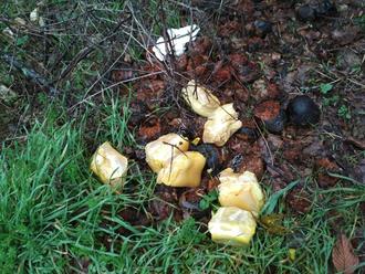 Zum wiederholten Male entsorgt irgendwer an den Feld- und Wiesenrändern rund um Hunolstein seine nicht verwertbaren Lebensmittel.