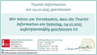 Am 04.10.2025 ist die Tourist-Information geschlossen