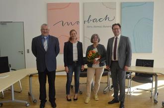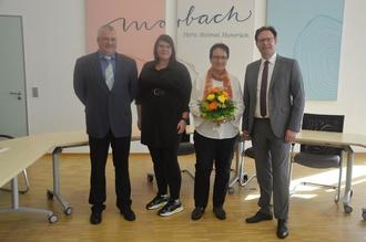 Personalratsvorsitzender Patrick Krickel, Abteilungsleiter Daniel Schäfer, Edith Petry und Bürgermeister Andreas Hackethal