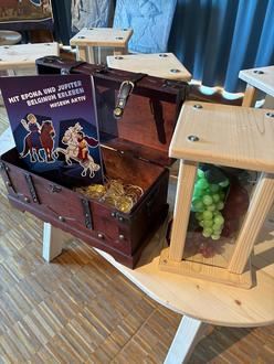 Vom 07.10.-10.10. hatten die Vorschulkinder der Kindergärten der Gemeinde Morbach nochmals die Gelegenheit, sich als Museumsdetektive auszuprobieren. Im Mittelpunkt der detektivischen Rätselaufgaben standen die beiden Götter Epona & Jupiter, die im Rahmen der diesjährigen Sonderausstellung im Kulturzentrum Archäologiepark BELGINUM, den Kindern erleb- und anfassbar das Leben der Kelten und Römer vermitteln. Die Kinder lösten unter anderem Aufgaben zum Thema Münzen bzw. Falschgeld, welches sie in einer Ausstellungsvitrine fanden. Sie hatten die Gelegenheit Getreide in einer kleinen Steinmühle zu mahlen sowie Lebensmittel und Pflanzen, die die Menschen früher schon kannten und nutzten, zu probieren. Am Ende aller gelösten Aufgaben stand der Öffnung der Schatzkiste nichts mehr im Wege, sodass jedes Kind als Andenken eine Lupe und eine Goldmünze mitnehmen durfte. Vielen Dank für die gute Kooperation an das Team des Kulturzentrums, die dieses Angebot für die Kitas möglich gemacht haben.