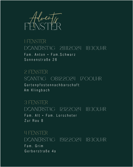 Wir beginnen um 14:30 Uhr mit dem Baum vor der Kirche und begeben uns anschließend zum Park am Sonnenbrunnen, wo der zweite Baum ab etwa 16:00 Uhr geschmückt wird.