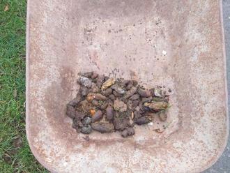 Sollte das „Unvermeidliche“ doch einmal an unpassender Stelle geschehen, bitten ich Sie, es zukünftig zu beseitigen. Dabei können die sogenannten Hundetüten hilfreich sein. Auf dem Bild zu sehen sind die liegengelassenen Hinterlassenschaften, die durch unsere Gemeindearbeiter nur im Teilstück zwischen Gemeindehaus und Fußgängerbrücke aufgesammelt wurden.