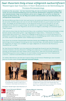 Saar-Hunsrück-Steig erneut erfolgreich nachzertifiziert