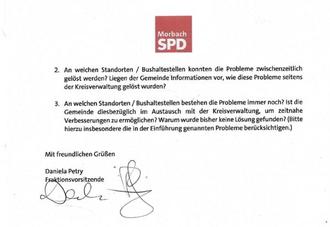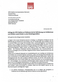 Anfrage der SPD-Fraktion im Gemeinderat Morbach zu Problemen bei der Beförderung von Schüle- rinnen und Schülern sowie Kindern zu den Kindertagesstätten vom 08.11.2024: