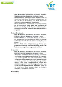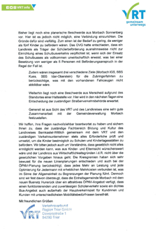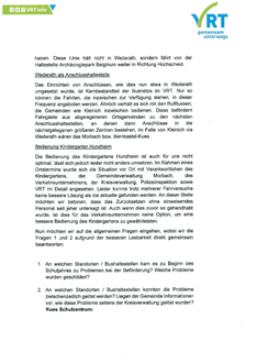 Bürgermeister Andreas Hackethal teilt hierzu mit, dass verwaltungsseitig die Fragestellungen zuständigkeitshalber an die Kreisverwaltung Bernkastel-Wittlich sowie an den Verkehrsverbund Region Trier GmbH (VRT) weitergeleitet wurden. Das Antwortschreiben des VRT lautet wie folgt: