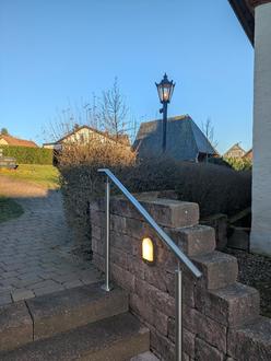 Um die Sicherheit der Besucher zu erhöhen, wurde an der Treppe zum Friedhof eine Lampe mit Bewegungsmelder installiert. Diese Maßnahme bietet eine sichere Beleuchtung in der Dämmerung und Dunkelheit.