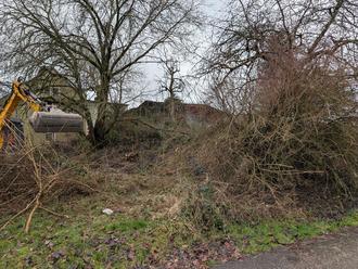 Bei dem kürzlich seitens der Gemeinde erworbenen Grundstück (ehemals Franz Nau) wurden nach Absprache Gehölz/Dornen geschnitten und der dort vorgefundene Abfall beseitigt.