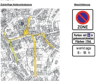 Im Bereich des Ortskernes wird die Beschilderung dahingehend geändert, dass die bereits vorhandenen Halteverbotszonen in Teilen der Birkenfelder Straße, Breitwiese und Hebegasse auf die Bahnhofstraße, Unterer Markt und Birkenfelder Straße erweitert wird.