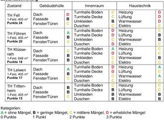Zwischenzeitlich wurde durch die Verwaltung (unter Beteiligung der Energie- und Klimaschutzagentur) der Zustand der Turnhallen aufgrund der aktuellen Gegebenheiten erneut betrachtet.