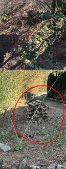 Grünschnitt im "Tälchen"; Paletten am Rand des "Tälchens".