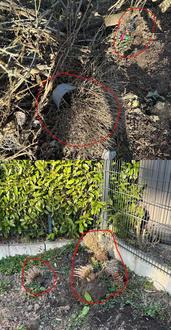 Alte Pflanzenstöcke, entsorgt mitsamt Blumentopf aus Plastik, Tälchen; entsorgte Blumenstöcke Kenner Ley II.