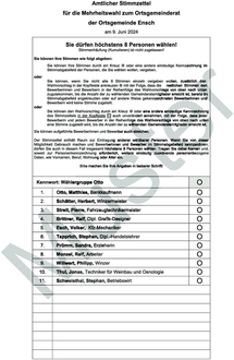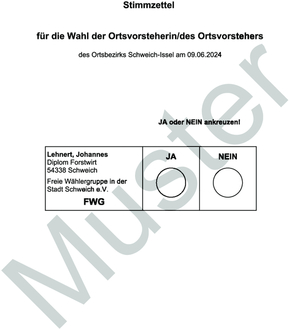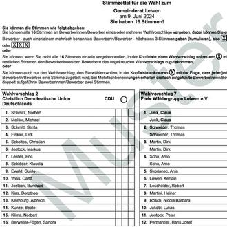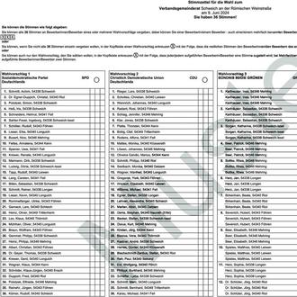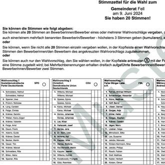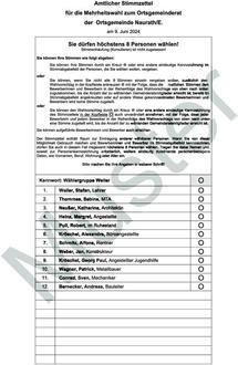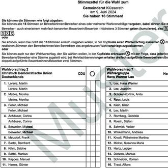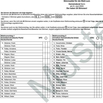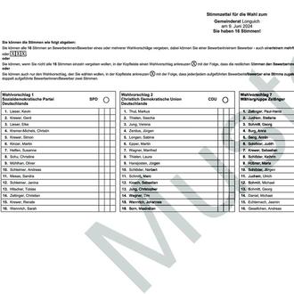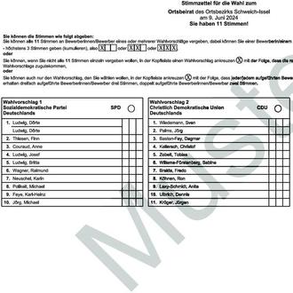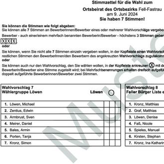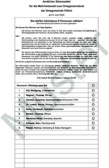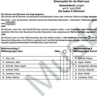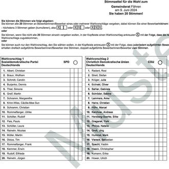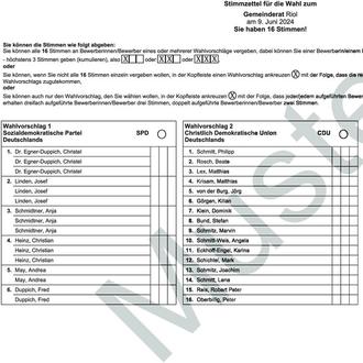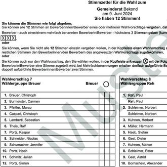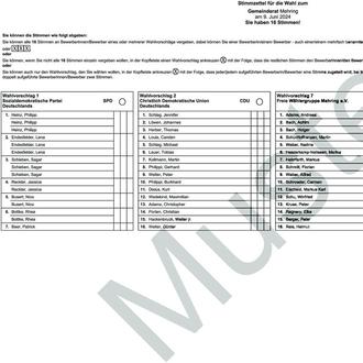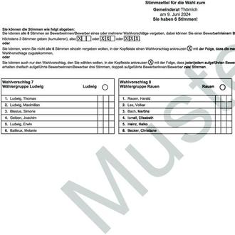 Kommunalwahlen am 09. Juni 2024 - Muster der Stimmzettel