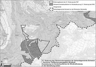 Der Verbandsgemeinderat Schweich hat am 30.11.2022 beschlossen, den Flächennutzungsplan zum 27. mal zu ändern, um auf der Gemarkung Leiwen weitere Flächen für die Nutzung der Windkraft darzustellen. Die betroffenen Flächen des Änderungsbereiches sind in der beigefügten Karte markiert.