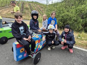 In diesem Jahr konnten einige unserer Schüler am 40. Seifenkistenrennen der Moselflitzer Klüsserath e. V. teilnehmen. Mit einem eigenen Rennteam konnten die Kinder ihre zuvor selbstgebaute Seifenkiste auf einer Rennstrecke testen und in einer eigenen Teamwertung ihre Rennzeiten vergleichen. Am Renntag wurden die Kinder von Lena Salewski betreut und unterstützt, so dass die Kinder umfangreich die Rennatmosphäre erleben konnten. Für dieses außergewöhnliche Erlebnis bedanken wir uns herzlich beim Seifenkistenclub Moselflitzer Klüsserath und der Familie Salewski für diese Kooperation mit unserer Grundschule.