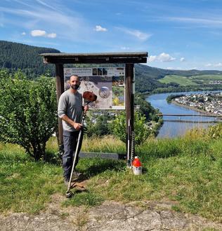 Ein herzliches Dankeschön spreche ich unserem Mitbürger Christian Ensch für seinen Arbeitseinsatz am Aktivpfad zum Huxlay-Plateau mit der Freistellung des zugewachsenen Schriftzuges „Mehring“ aus.