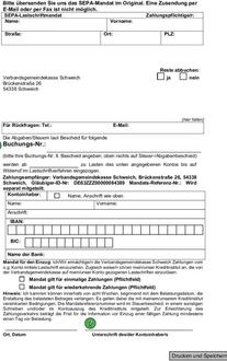Wenn Sie am Lastschriftverfahren teilnehmen möchten, senden Sie uns bitte den Vordruck für ein SEPA-Lastschriftmandat ausgefüllt und unterschrieben im Original zu.