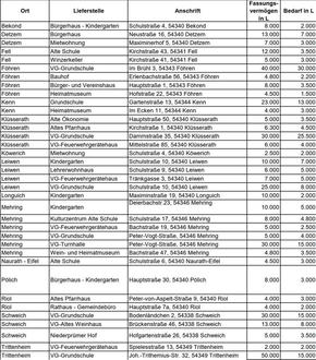 Tabelle 2: Kommunale Liegenschaften mit Heizölanlagen, deren Fassungsvermögen und Bedarf
