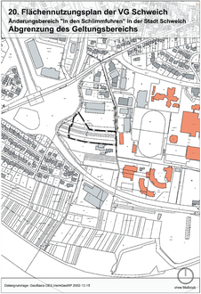 | Die Planunterlagen können während der Offenlage auch auf der Internetseite der Verbandsgemeinde Schweich unter www.schweich.de, Bereich „Bauen und Wohnen“, Menüpunkt „Planverfahren“ als pdf-Datei angesehen und heruntergeladen werden. | |